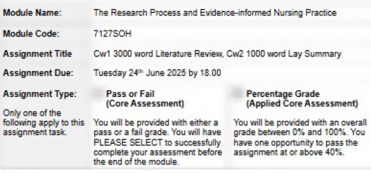 | University | Coventry University (CU) | Module Title | 7127SOH: The Research Process and Evidence-informed Nursing Practice |
