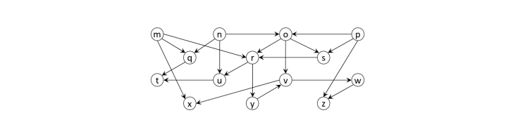 a) Show the topological sort that would be achieved after running depth rst search such that vertex m is the rst vertex explored, and the neighbor vertices are visited in alphabetical order. (5 points)
