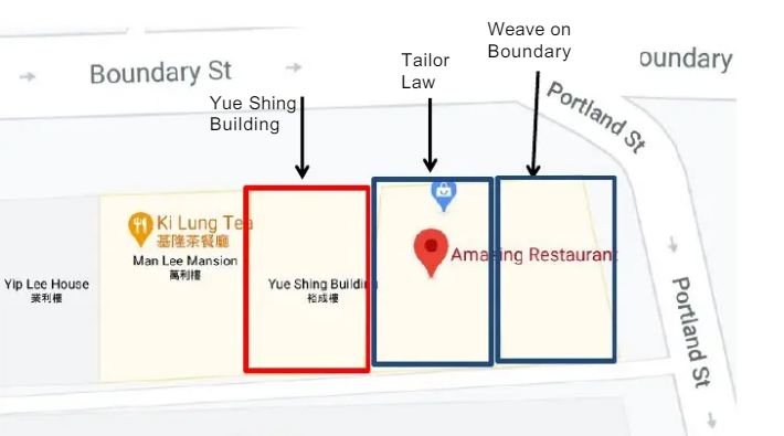 The YueShing building, Tailor Law building and the Weave on boundary building on Boundary Street and Portland Street intersection as shown in figure 2.