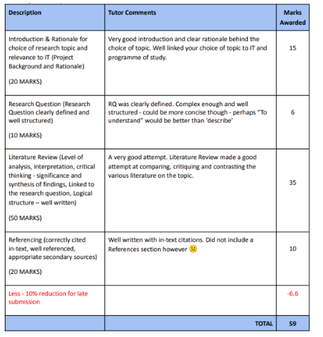 Students will be required to identify a topic area of interest that relates to IT – this will lead to a literature review in which the topic/problem area is critically explored. The findings of the literature review will inform the creation of your primary research project.