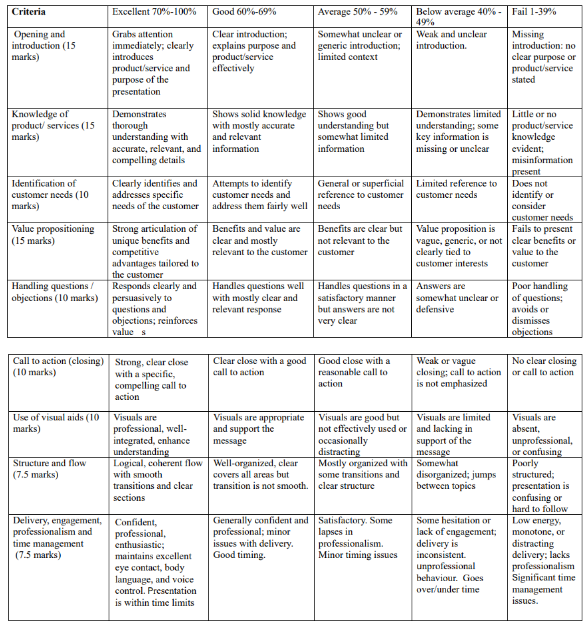 Deliver a sales presentation on a product or service offering of your organisation or any organisation of your choice to a prospective customer.